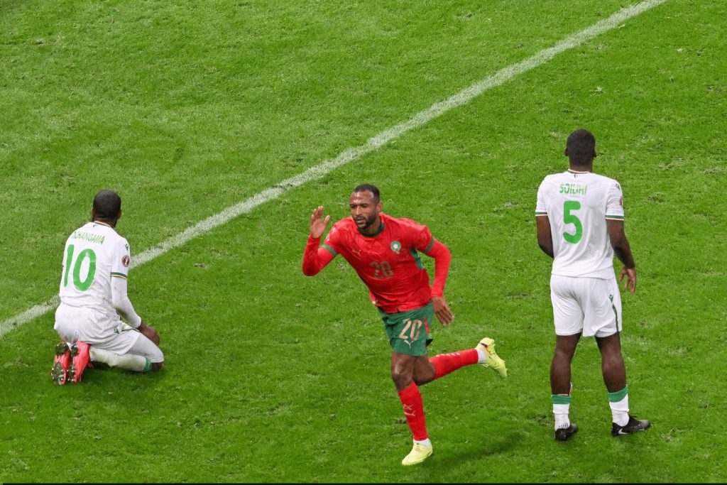وضاعف النجم المغربي أيوب الكعبي النتيجة لصالح الأسود بضربة مقصية عالمية بعد 9 دقائق من دخوله بديلا.